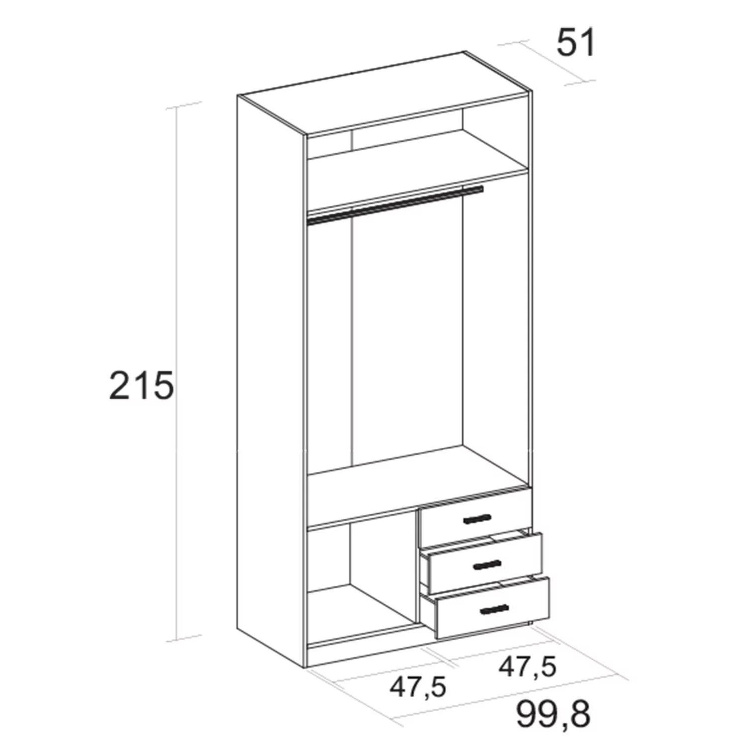 • Ancho 100 x Alto 215 x Fondo 52 Medidas: Ancho 100 x Alto 215 x Fondo 52