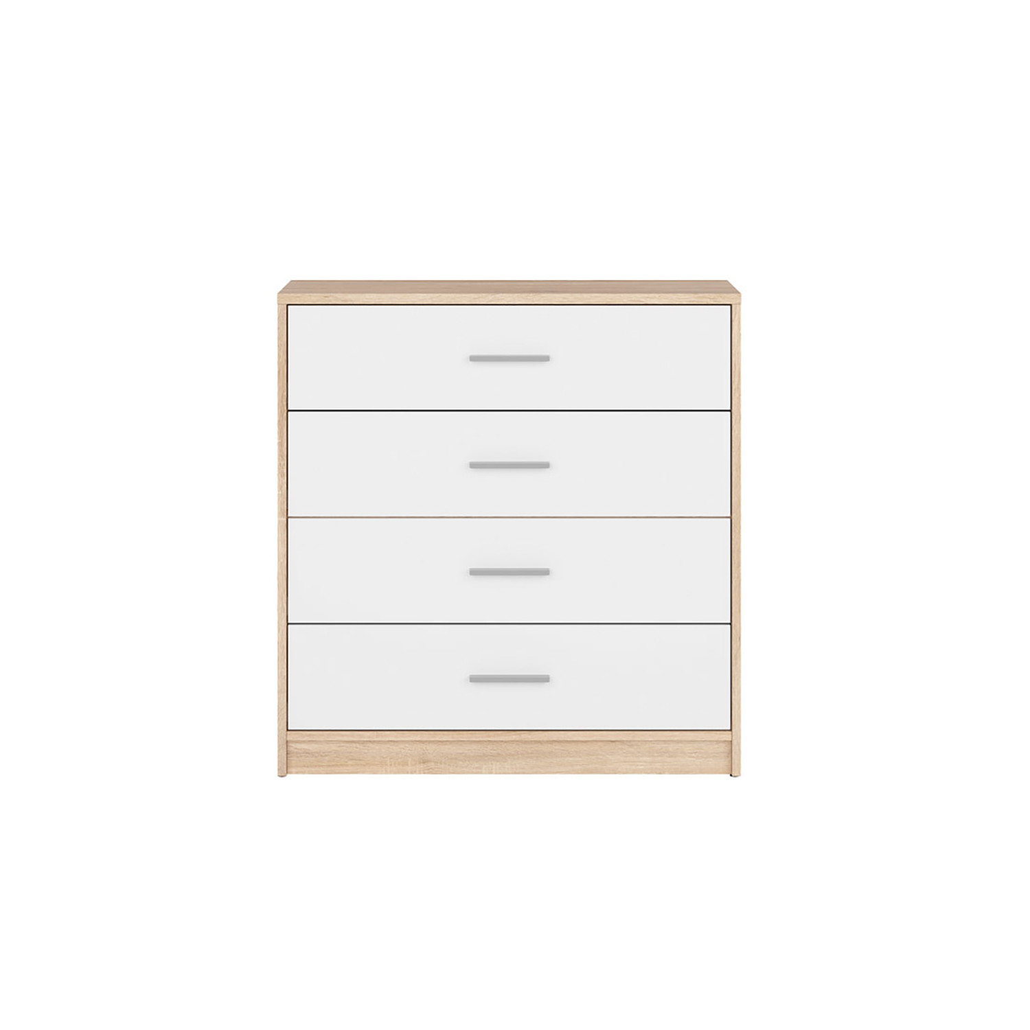 cómoda Temu es tu solución! Con sus cuatro cajones podrás organizar toda tu ropa de manera eficiente y mantener la habitación siempre ordenada. Su diseño moderno y minimalista, con cuatro amplios cajones en color cambrian y frentes en blanco, te permitirán guardar y organizar tu ropa de cama, mantas, jerseys y mucho más. Además su tamaño compacto lo hace perfecto para cualquier espacio, desde dormitorios juveniles hasta habitaciones principales.