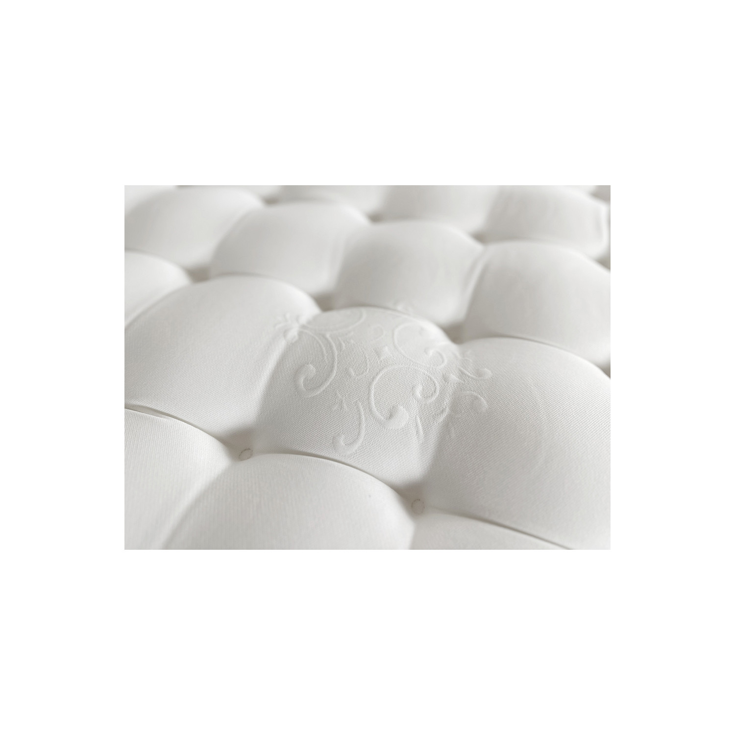 Además, está diseñado para durar: la correa Vispring blanca y los costillares de espiga ayudan a mantener su forma y resistencia con el paso del tiempo. Los detalles como el bordado veneciano y el bolsillo práctico le dan un toque elegante y funcional que lo hace destacar en cualquier dormitorio.