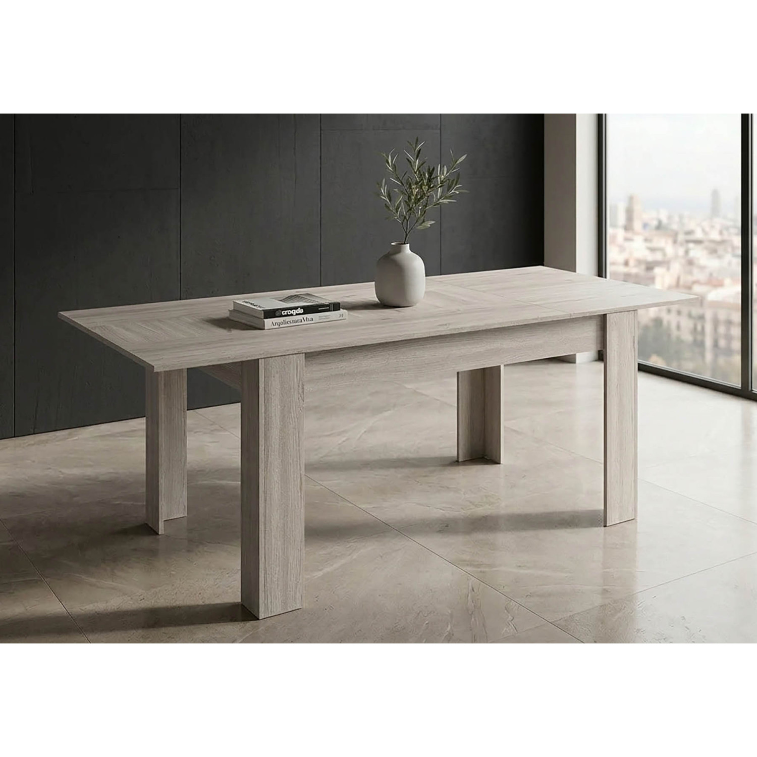 Mesa comedor extensible fabricada en España utilizando materiales de alta calidad y maquinaria de última generación, obedeciendo a los controles estándares de calidad y garantía Europeos.