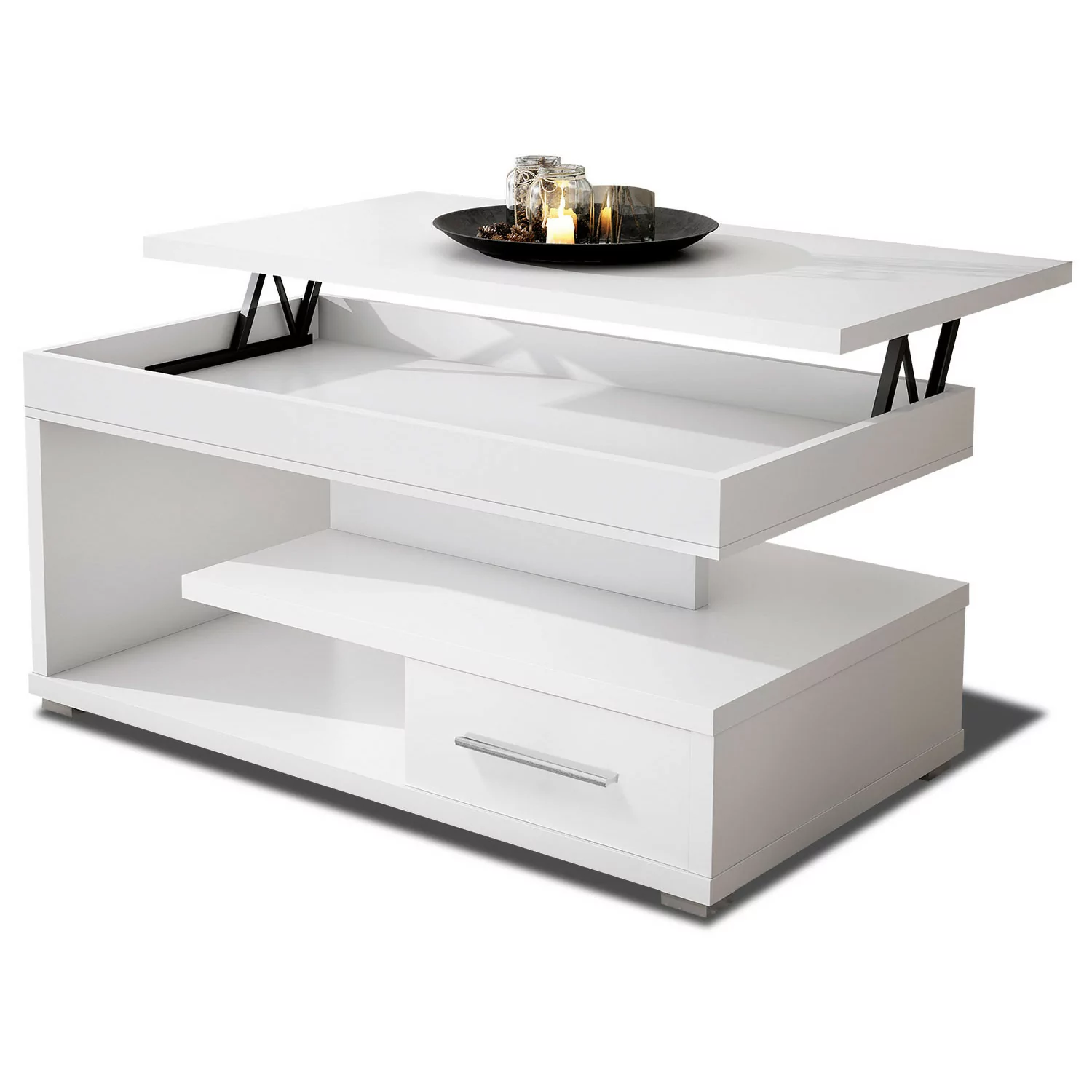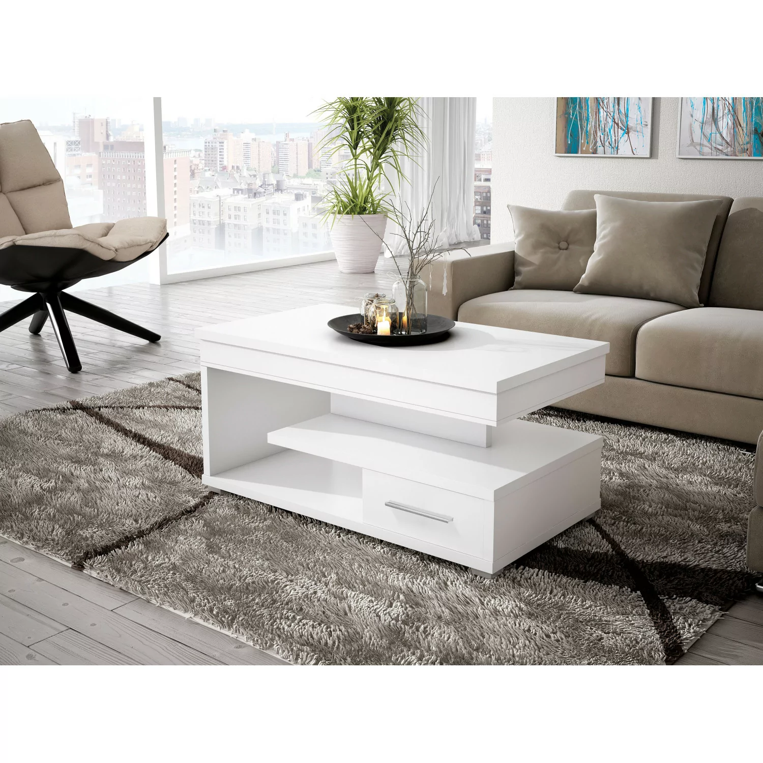 La mesa de centro elevable con cajón blanca veteada se han utilizado tableros de 30mm de grosor en color blanco en tapa, zócalo y costados laterales y de 16mm en los costados interiores. con bisagras metálicas para que podamos bajar y subir la mesa con facilidad. Patas cuadradas cromadas atornilladas al zócalo. Los herrajes con excéntricas metálicas para unir todas las piezas de la mesa