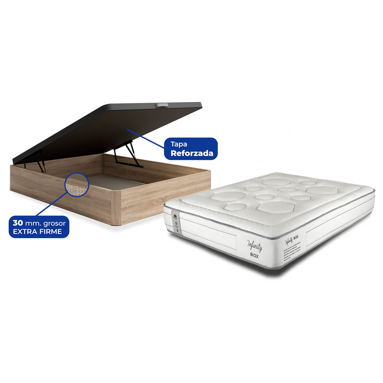 El pack de canapé cambrian con colchón Infinity está diseñado para ofrecer un descanso amplio, confortable y funcional. Este pack combina el canapé Berlín abatible con gran capacidad de almacenamiento con el colchón Infinity Box de muelles ensacados, creando un equipo de descanso que aporta soporte, ventilación y comodidad para el uso diario.