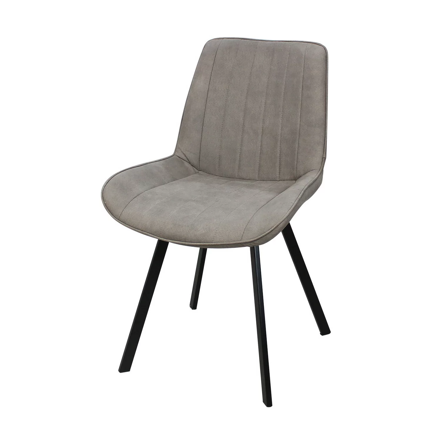 Silla de comedor económica tapizada en tejido imitando al cuero con costuras en respaldo y asiento en color gris. Vienen en cajas de 4 unidades (el precio es por unidad).