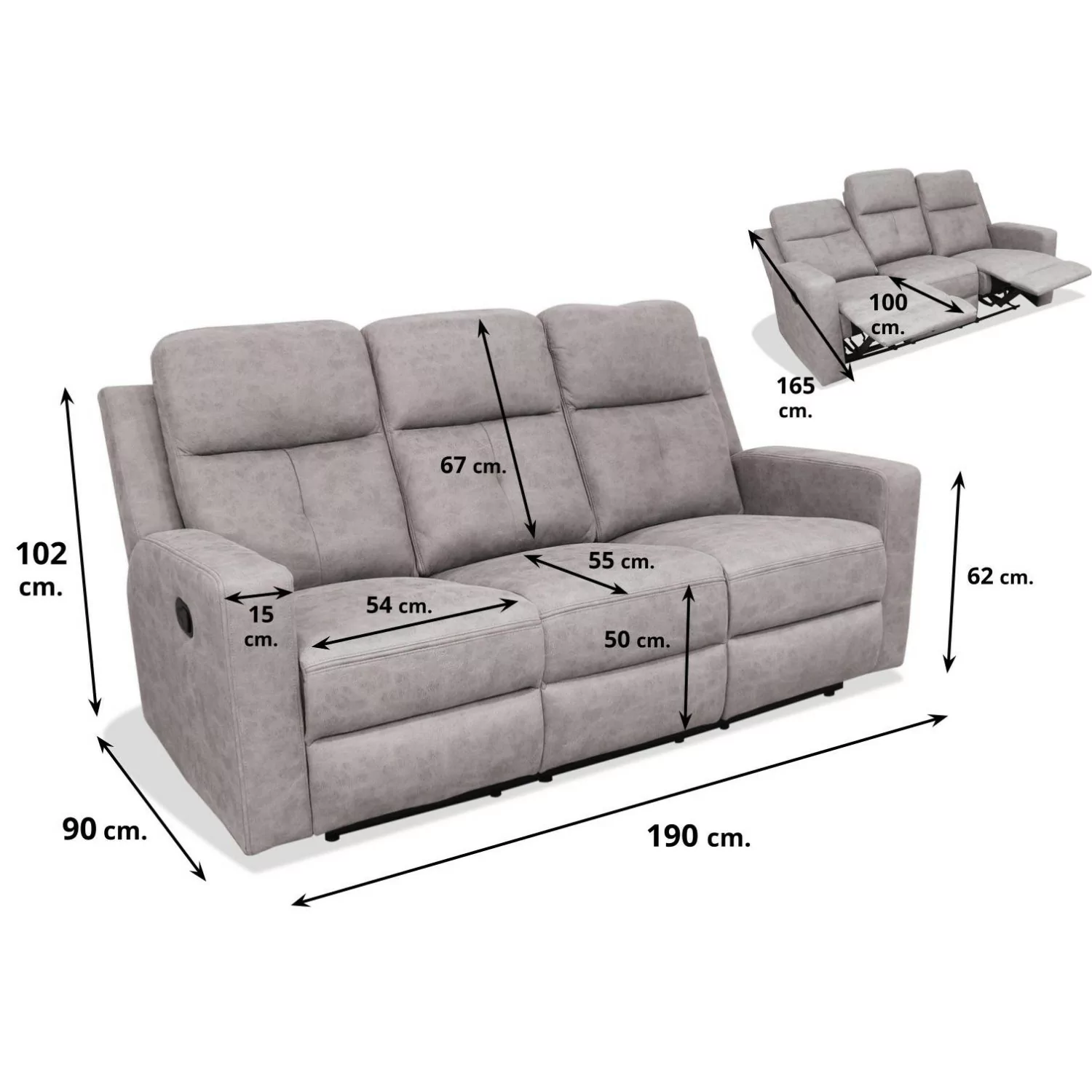 • Descripción: Sofá relax reclinable tres plazas Nadal 190 cm color gris