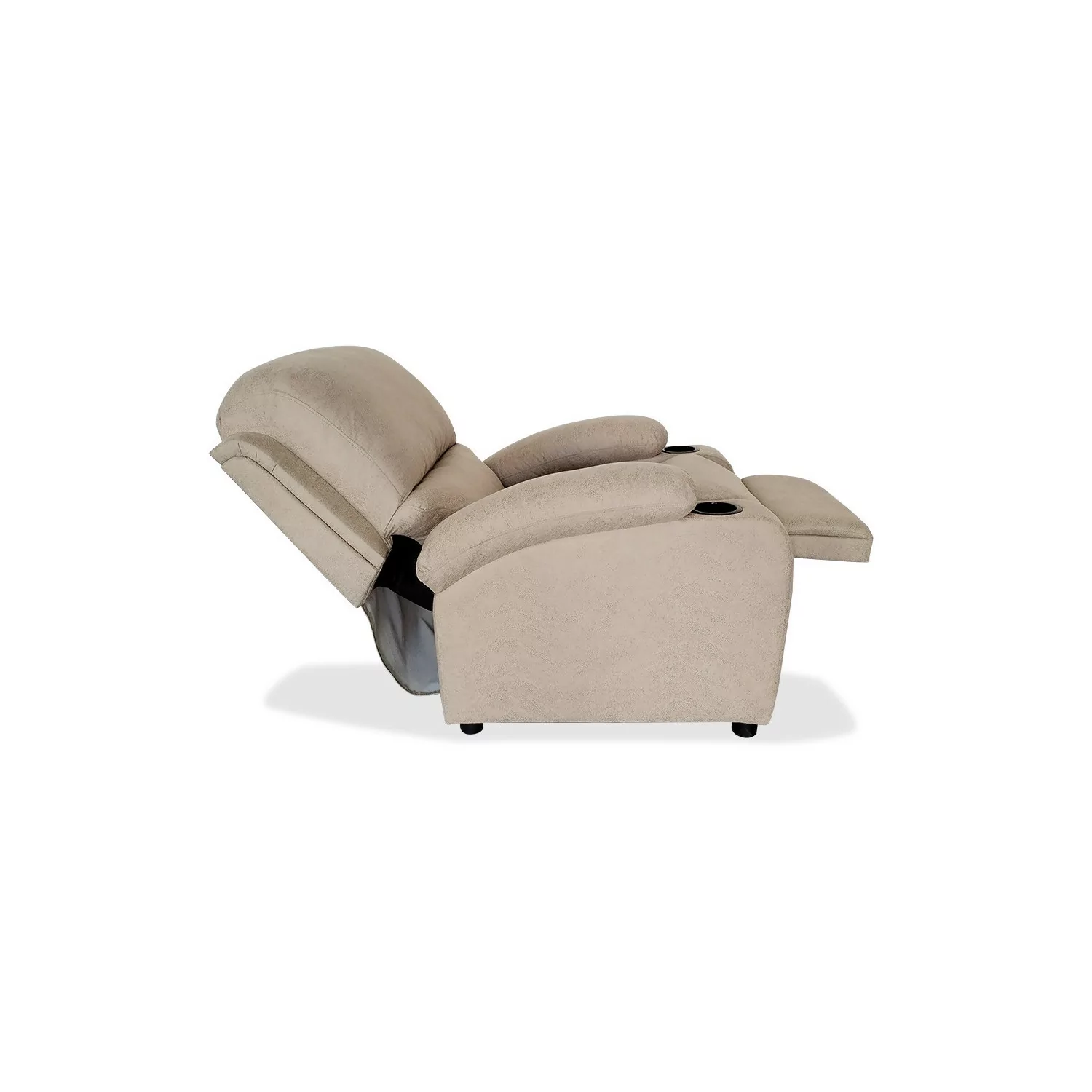 Deja atrás el estrés y las preocupaciones con el sillón relax reclinable en color beige. Su suave respaldo y su asiento acolchado se adaptan al cuerpo, brindándote un soporte perfecto. Amplios soportes en los apoyabrazos para colocar bebidas u otros objetos.