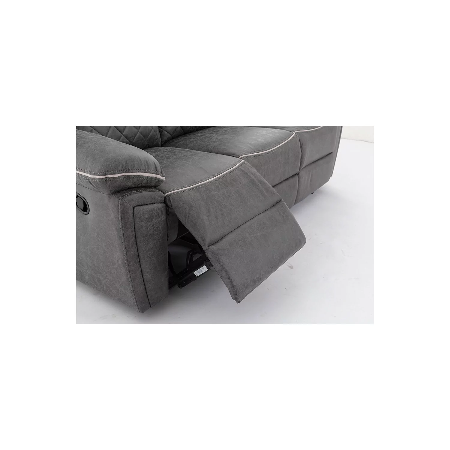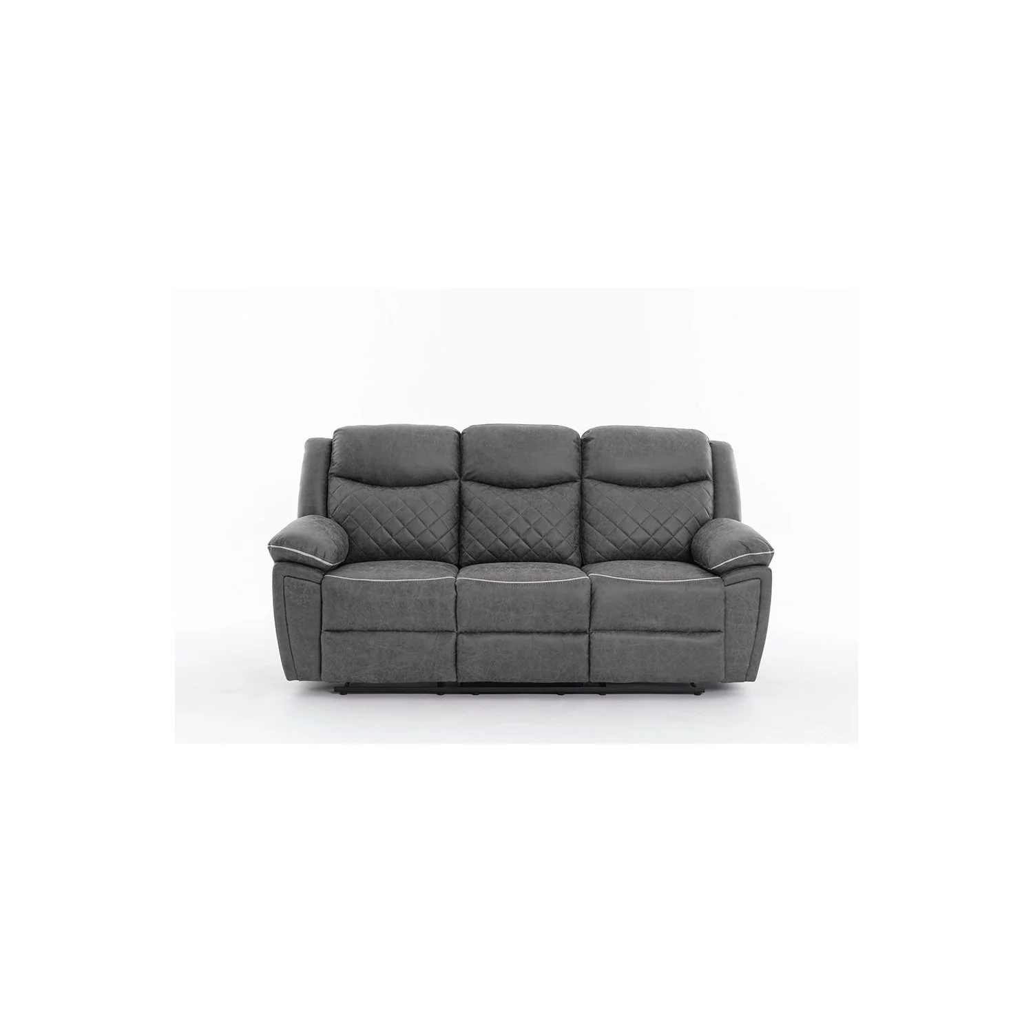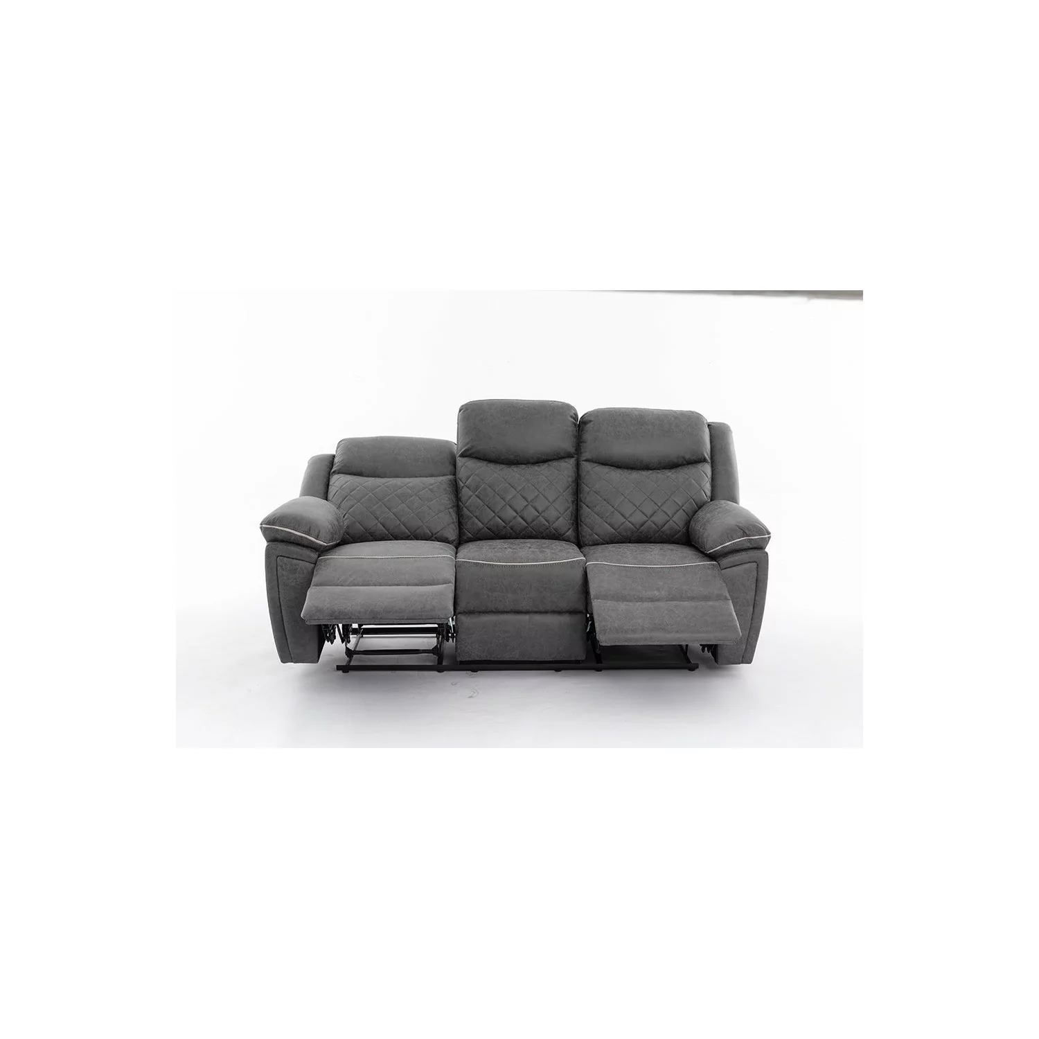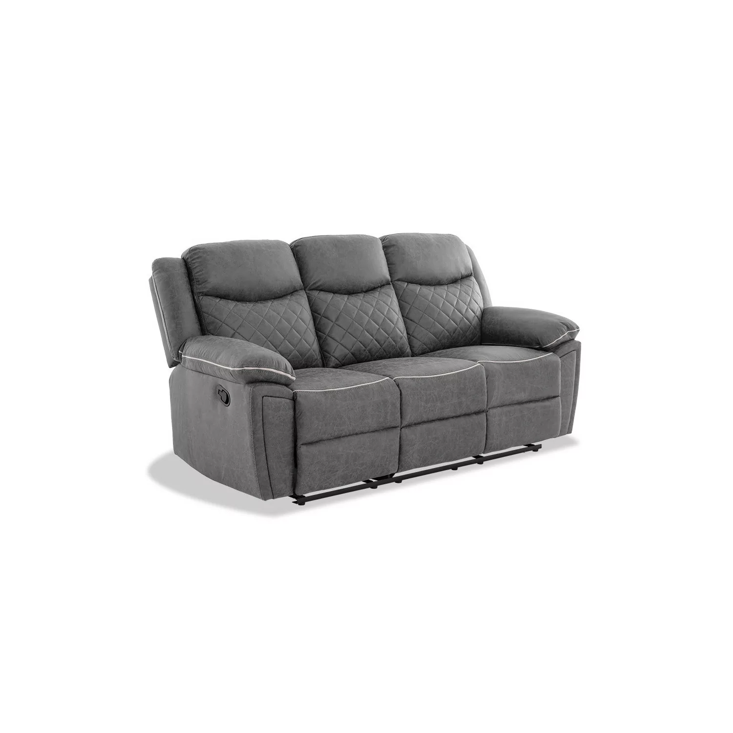 Descubre el máximo descanso con el sofá tres plazas reclinable manual, gracias a su palanca, podrás ajustar el sofá en dos posiciones diferentes, llegando a una posición casi horizontal. Los asientos, con espuma de alta densidad, junto con el respaldo de fibra y los brazos acolchados, aseguran una ergonomía y comodidad excepcional.