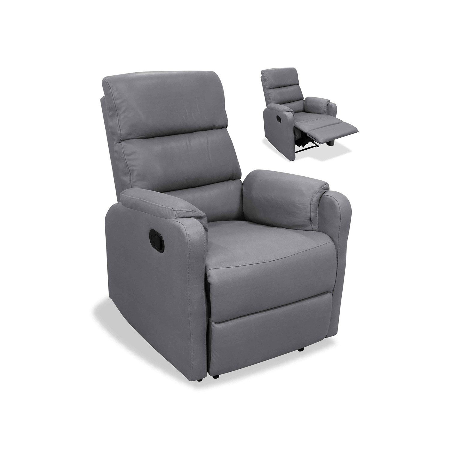 Sillón relax individual en color gris diseñado para personas que buscan relajación y comodidad al llegar a casa. Asientos relax con sistema de palanca manual permitiendo poner el sillón en posición casi horizontal.