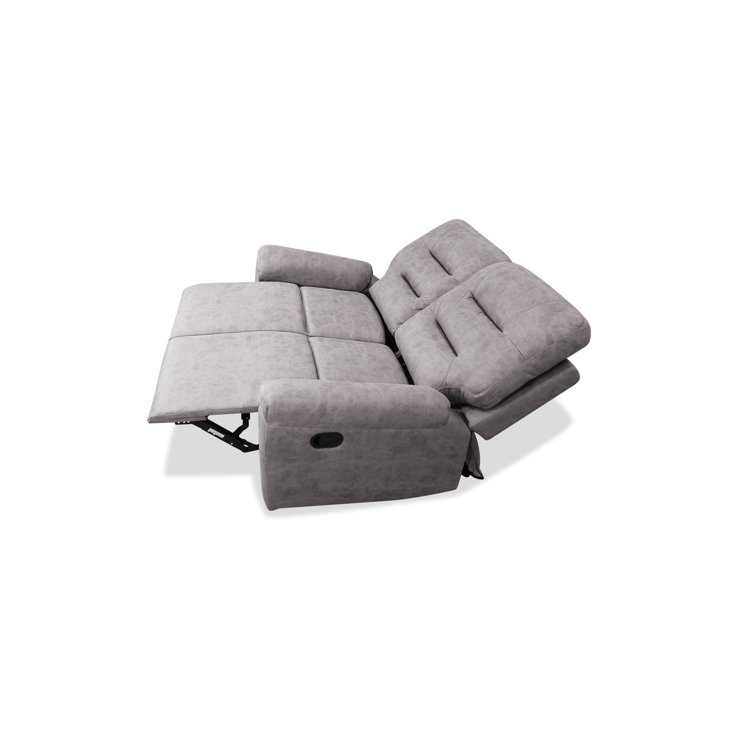 Sofá relax manual 2 plazas en color gris cemento. Su diseño ergonómico, con respaldo reclinable y reposapiés elevable, te permitirá adoptar una postura cómoda. Fabricado con materiales de alta calidad, este modelo de sofá te ofrece la máxima durabilidad y resistencia.