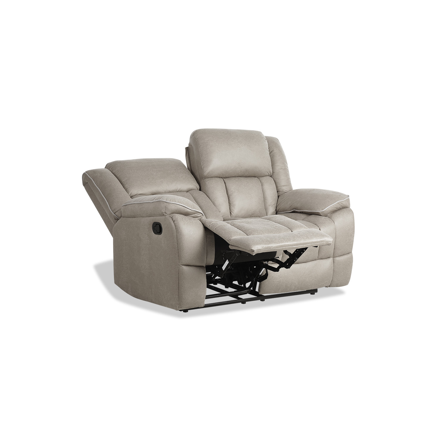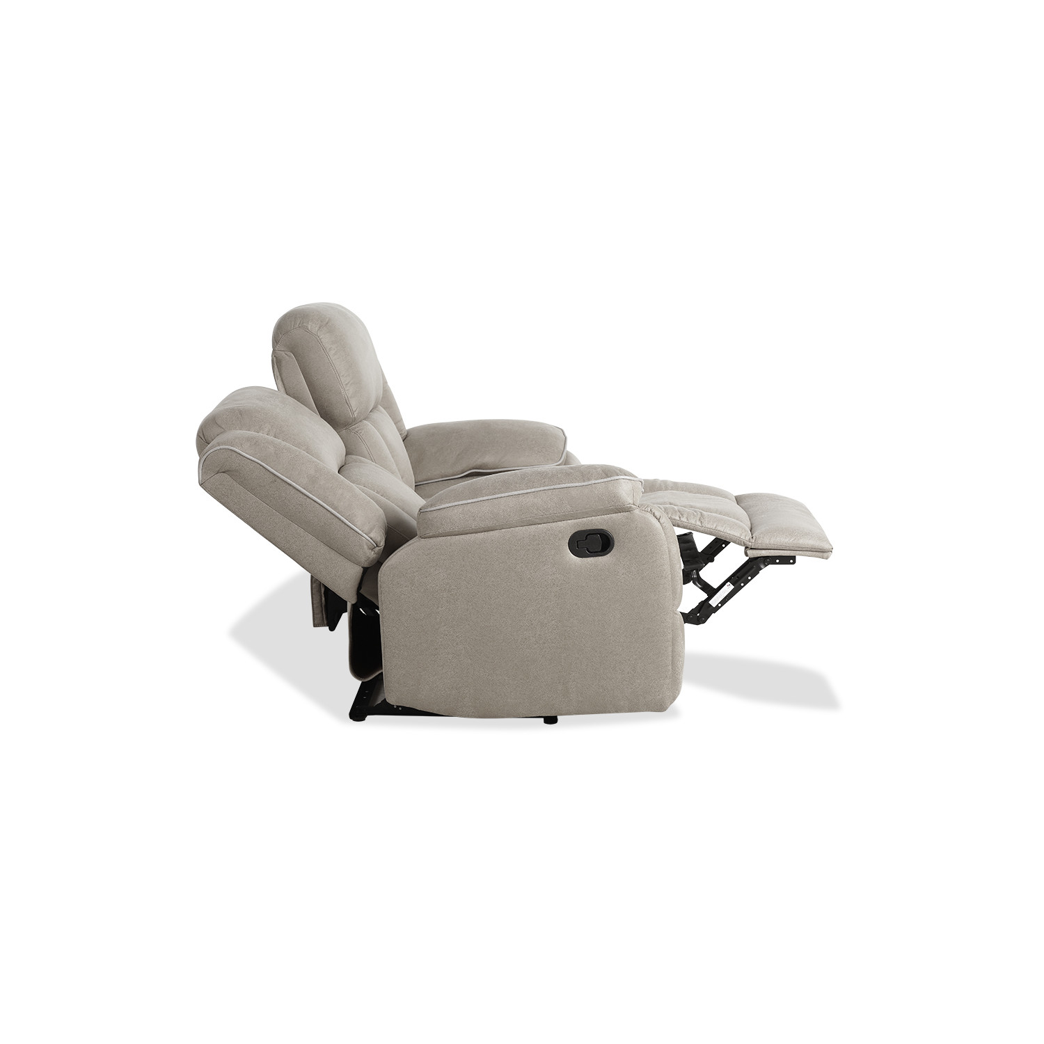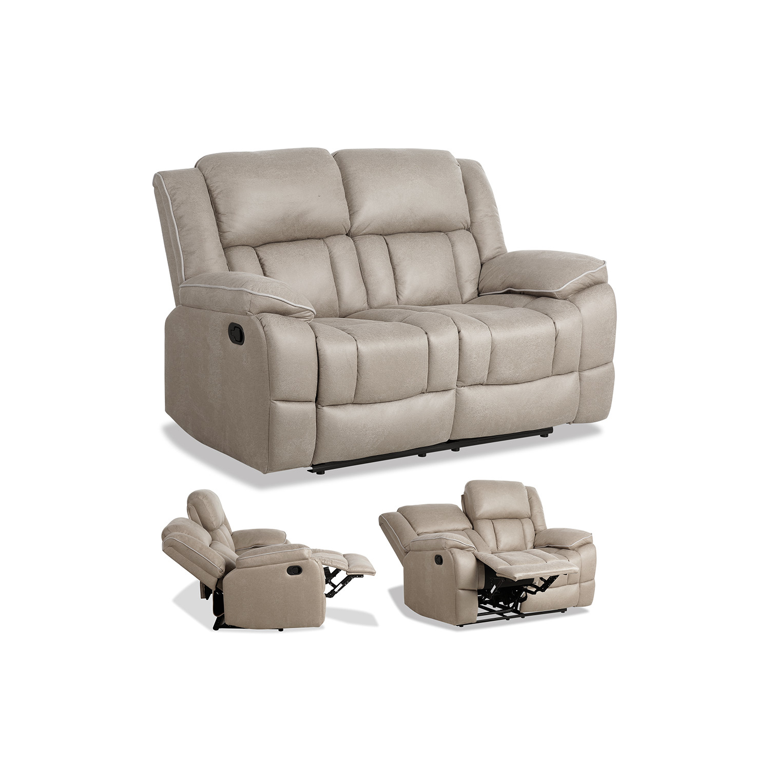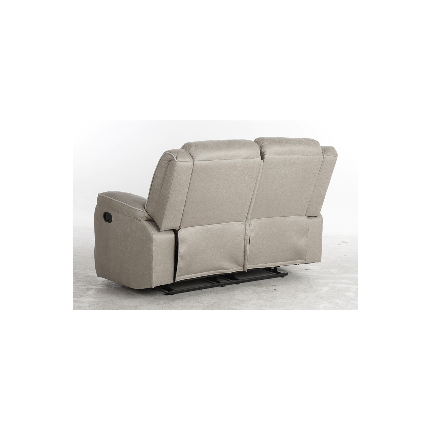 Sofá reclinable manual dos plazas en color beige. Su diseño robusto y su precio económico lo convierten en una opción ideal para cualquier hogar. ¡Siente la comodidad de sus dos asientos con relax, que se pueden reclinar de forma independiente mediante un sistema de palanca!