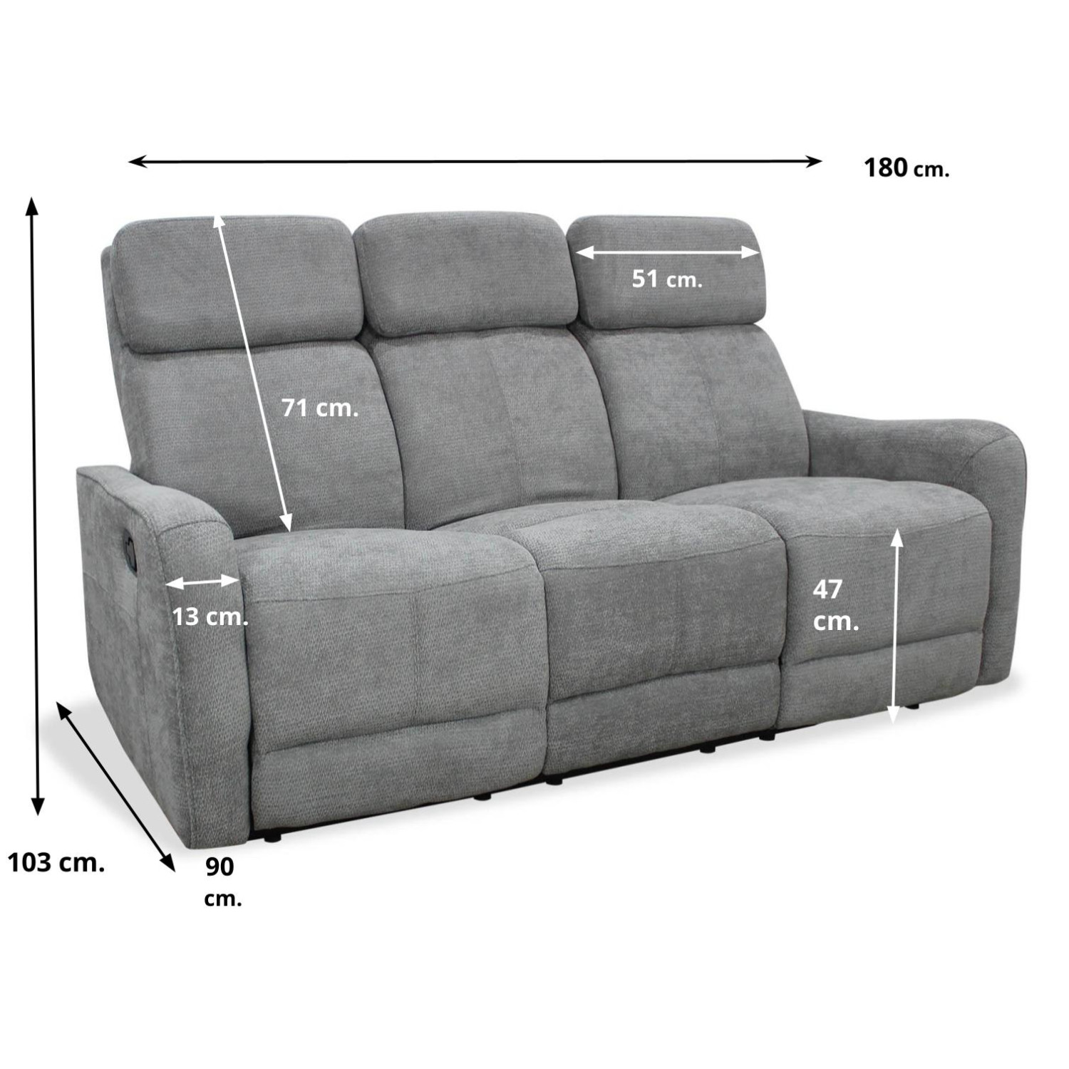 • Descripción: Sofá relax Kardashian gris tres plazas 180 cm