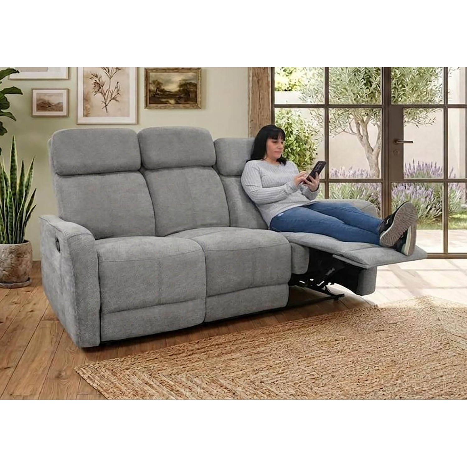Disfruta del máximo confort con el sillón reclinable 3 cuerpos en gris modelo Kardashian, una opción cómoda, funcional y económica pensada para el descanso diario en tu salón. Combina un diseño actual con un alto nivel de confort gracias a su sistema relax manual en los asientos, que permite elevar las piernas y reclinar el respaldo de forma sencilla y cómoda. Sus reposapiés extensibles y su sentada confortable lo convierten en la elección ideal para relajarte viendo la televisión, leer o desconectar al final del día. Además, su tapizado suave y agradable al tacto, junto con una estructura resistente y materiales de calidad, garantizan durabilidad y bienestar en el uso diario sin renunciar a un precio ajustado.