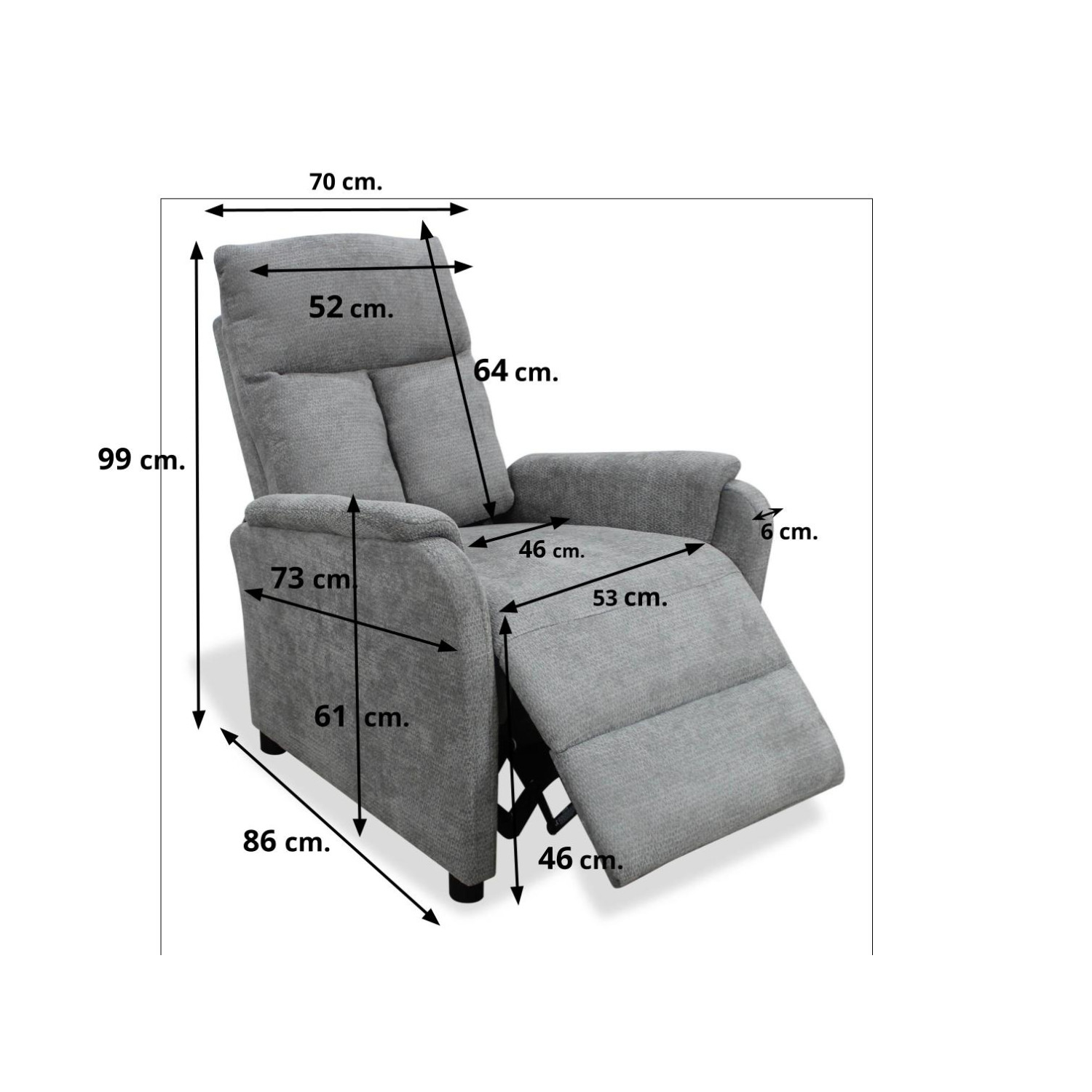- Descripción: Sillón relax Cloe gris apertura de empuje