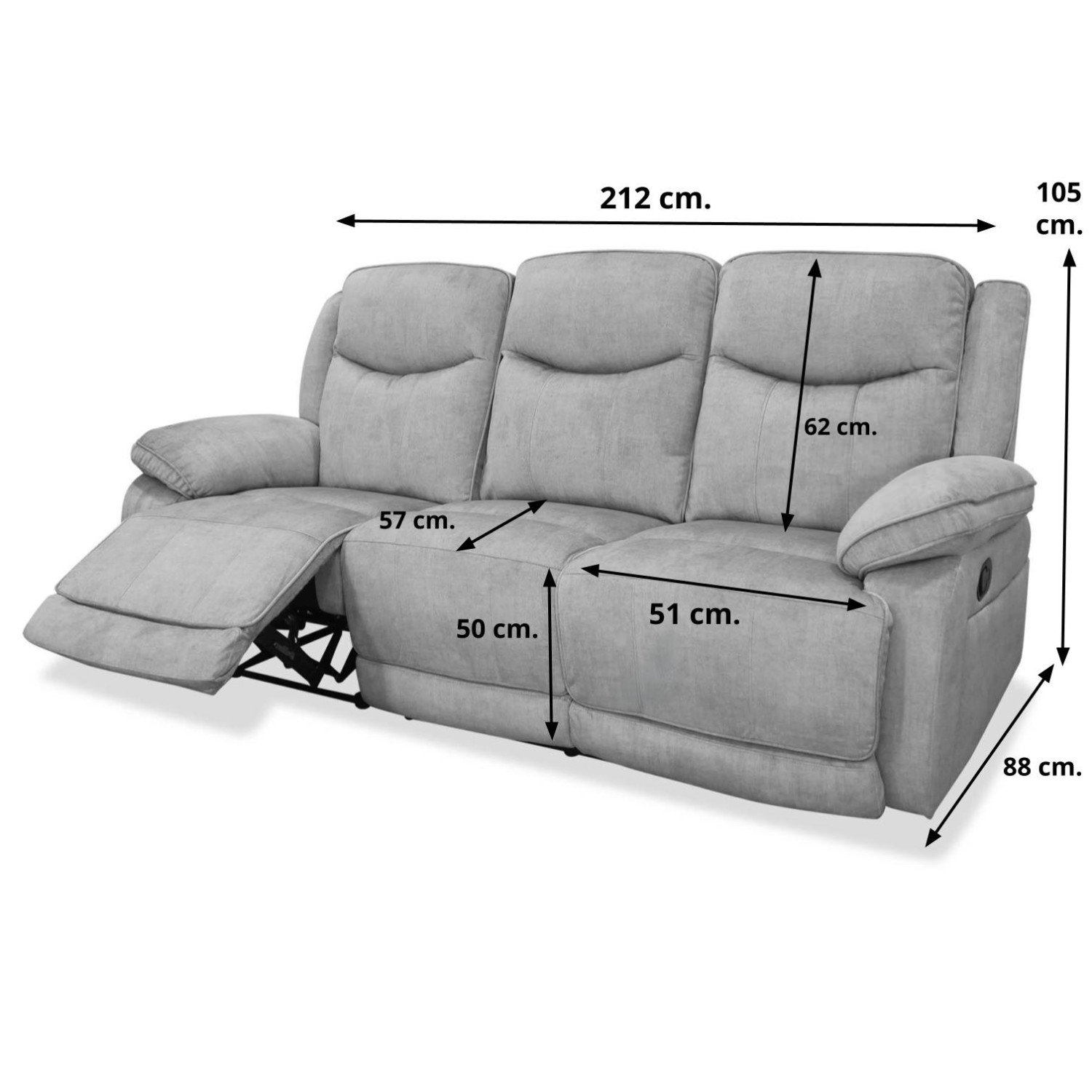 - Descripción: Sofá relax tres plazas Justin 212 cm