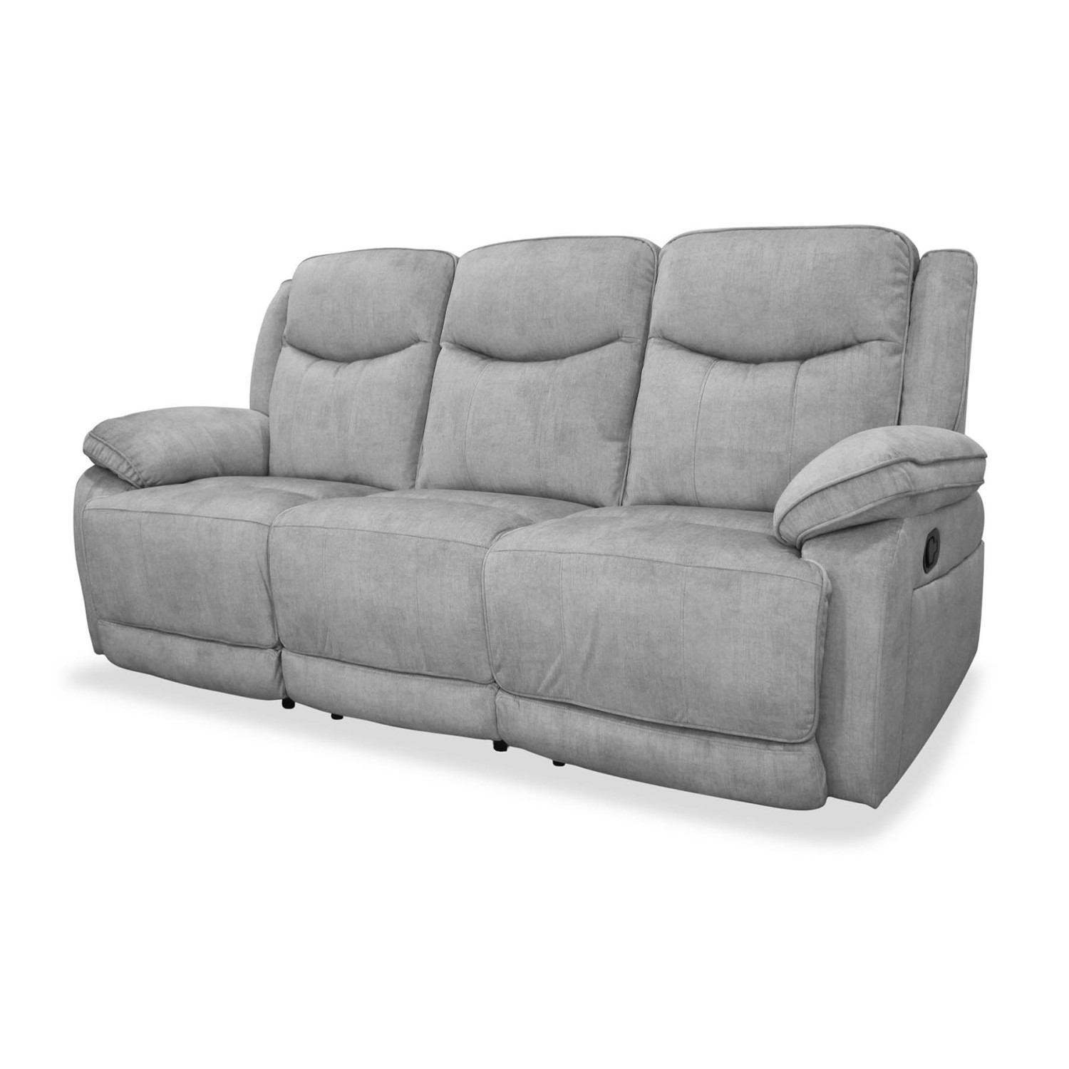 El sofá relax tres plazas Justin de 212 cm en acabado gris claro está diseñado para proporcionar el máximo confort en espacios amplios. Gracias a su sistema manual con palanca lateral, los asientos de los extremos pueden reclinarse de forma independiente, permitiendo que cada usuario ajuste su postura de descanso con total comodidad.
