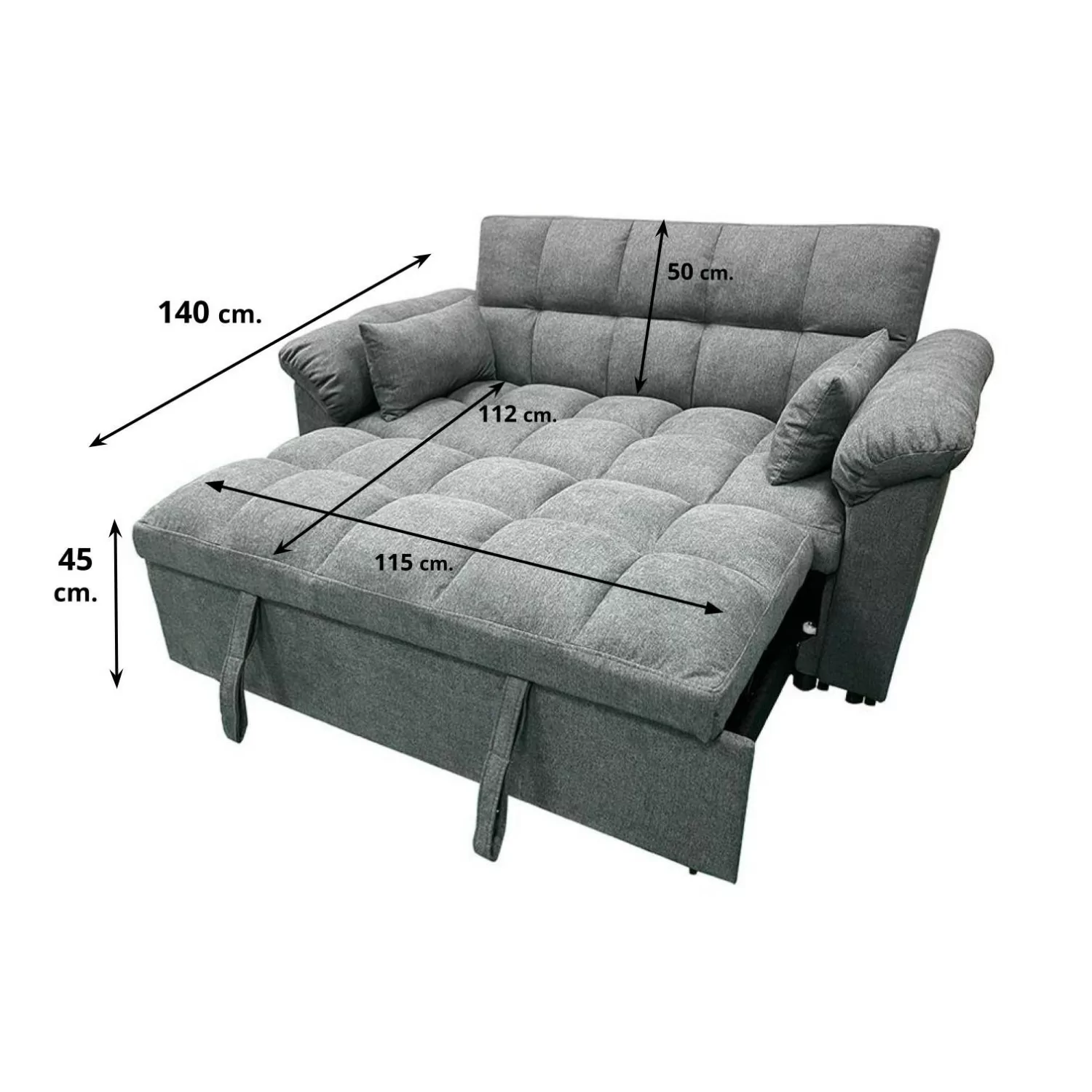 Medida del sofá con la cama de arrastre abierta: Alto 45 x Ancho 120 x Fondo 140