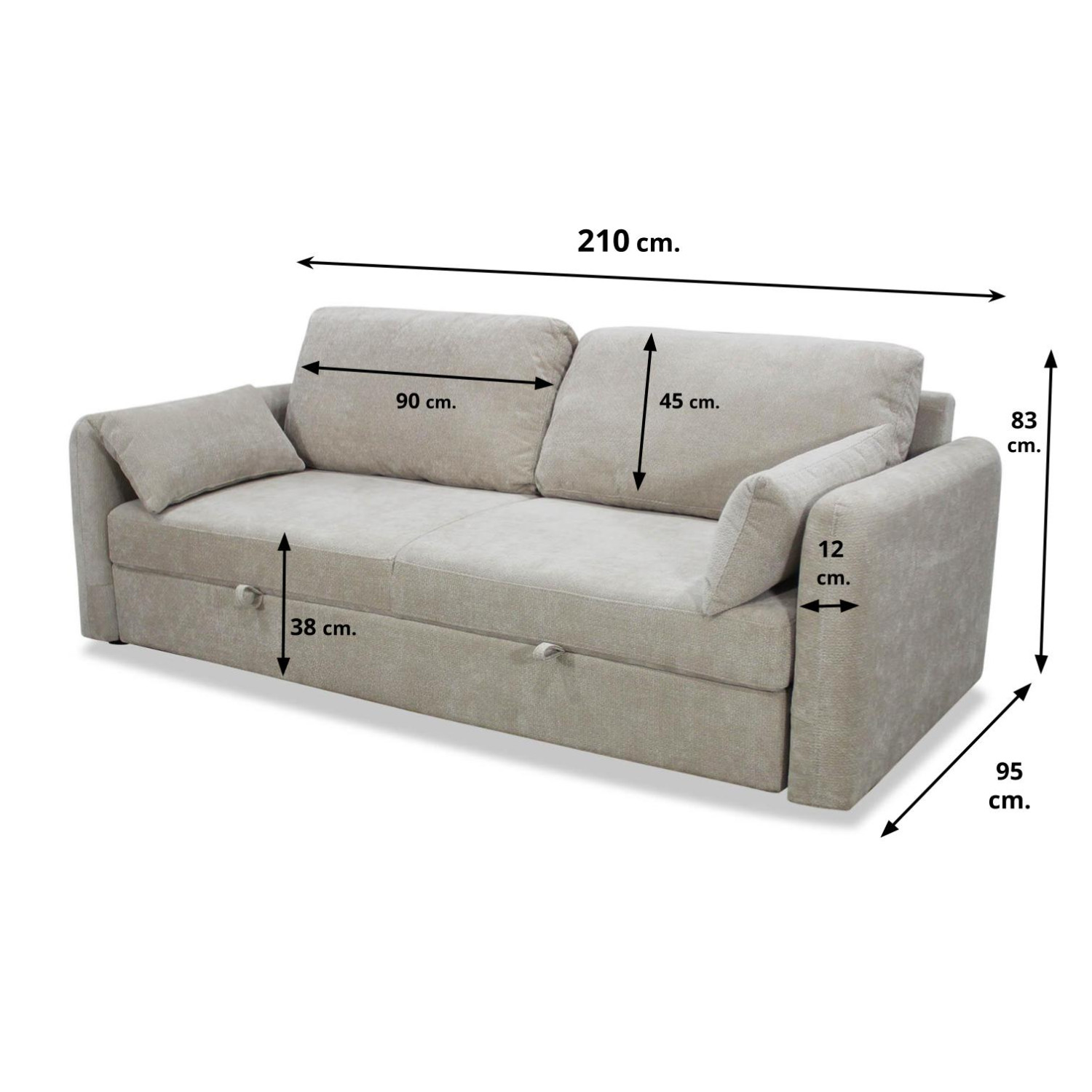 • Medidas (cm): Ancho 210 x Alto 83 x Fondo 95