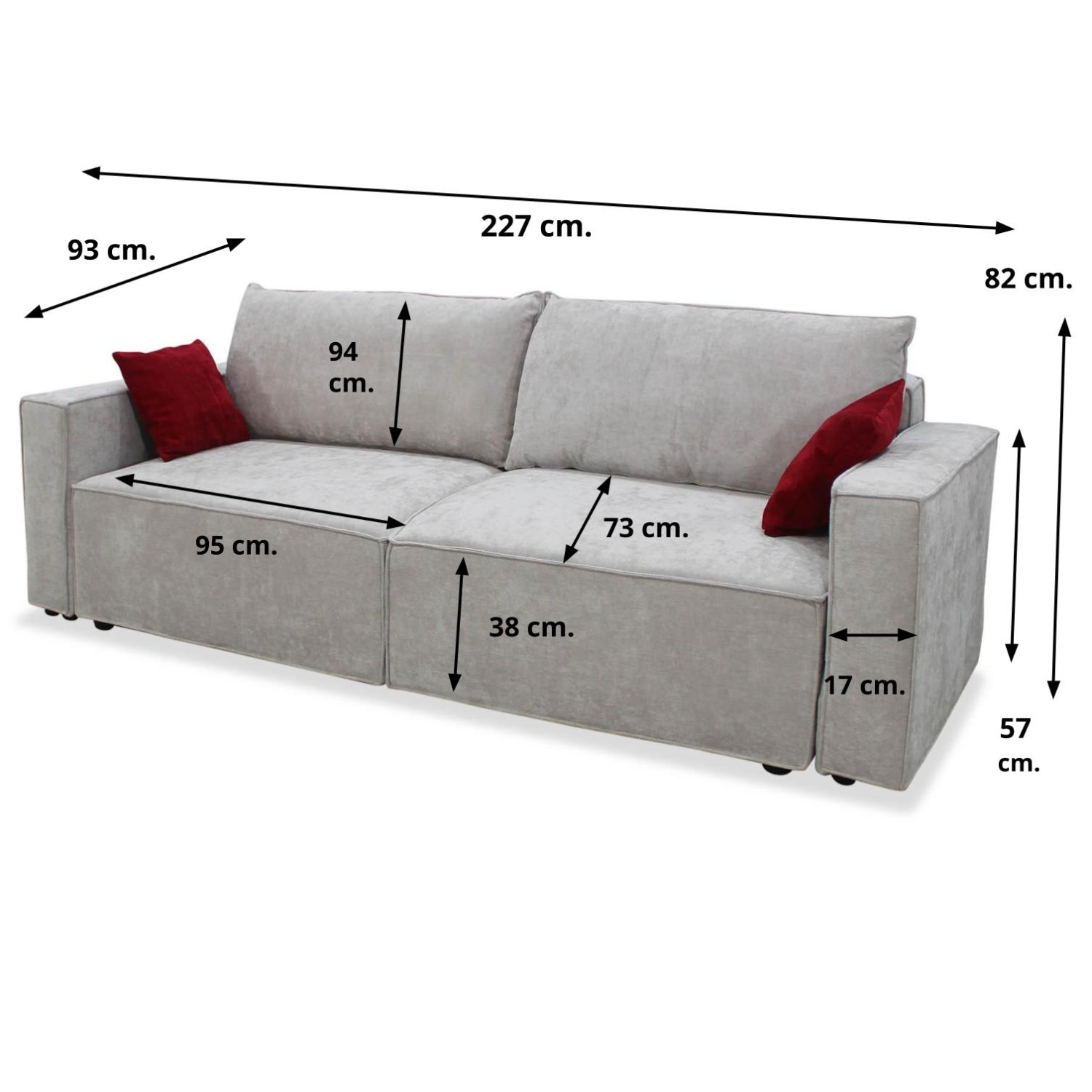 • Descripción: Maxi sofá cama tres plazas beige gris 227 cm