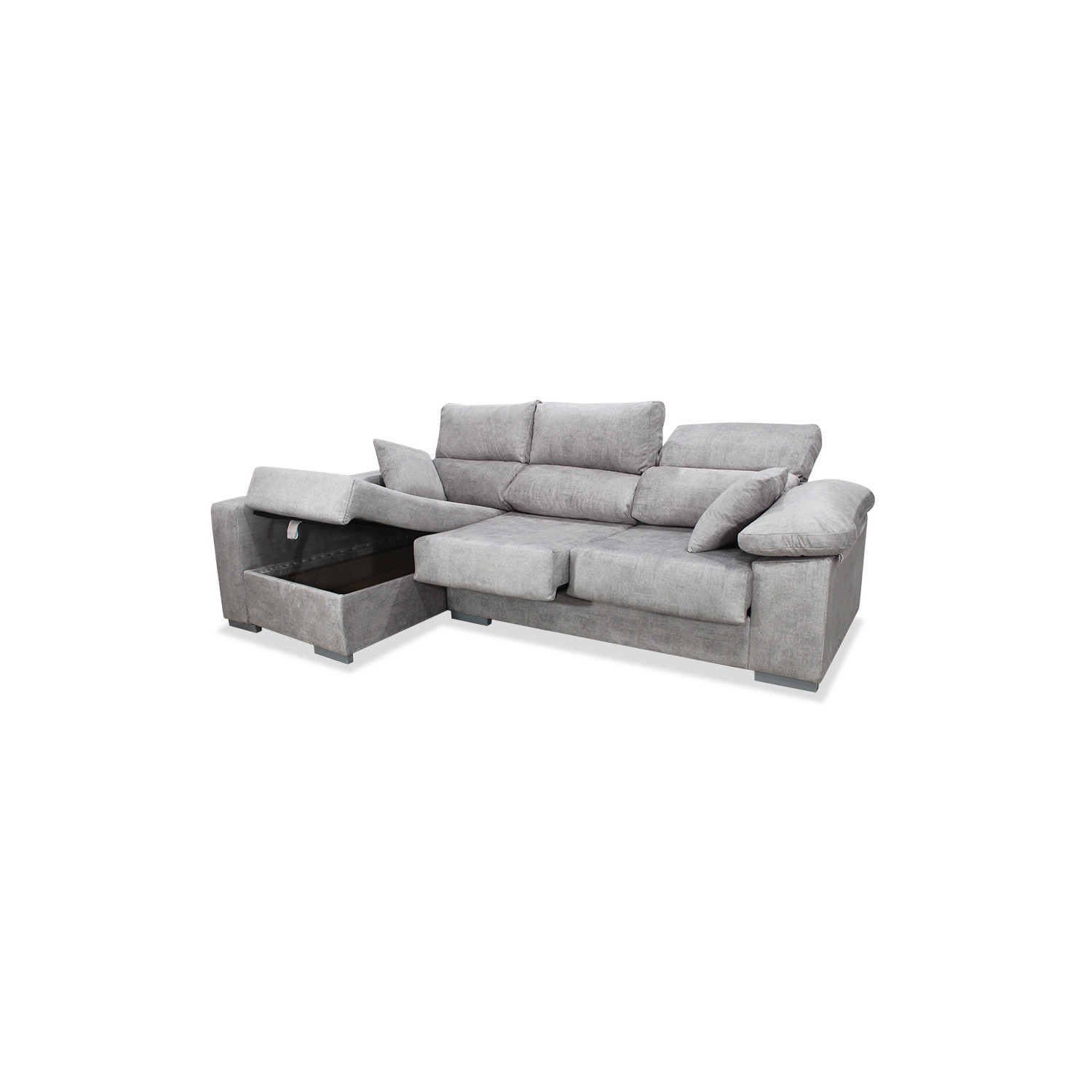 Sofá chaise longue izquierda Jaime 260 cm con arcón abatible y cojines incluidos. Perfecto para tu salón, con amplio espacio para guardar y disfrutar en familia. Calidad y comodidad al mejor precio.