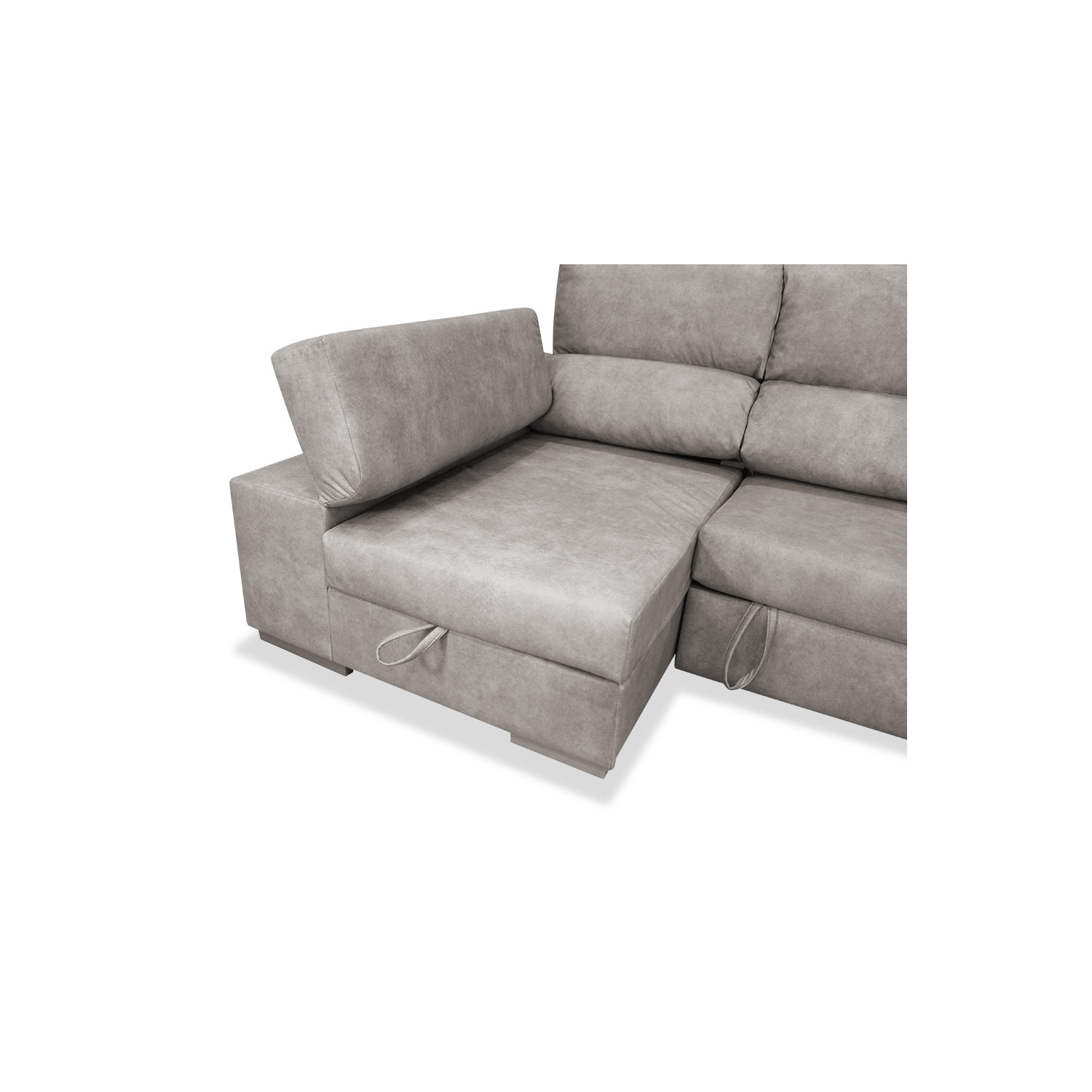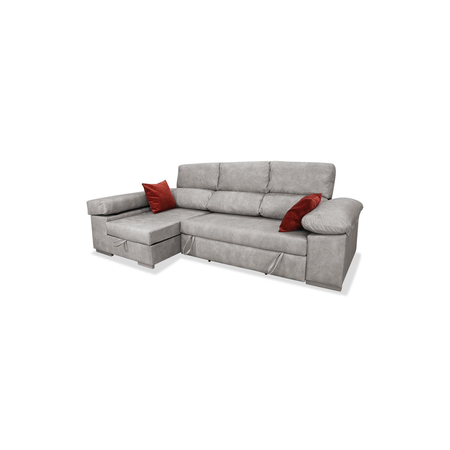 Sofá cama chaise longue izquierda Supreme con arcón abatible, asientos deslizantes, respaldos abatibles y reposabrazos convertible en respaldo. Elige descanso, funcionalidad y diseño en tu salón. Cojines decorativos opcionales.