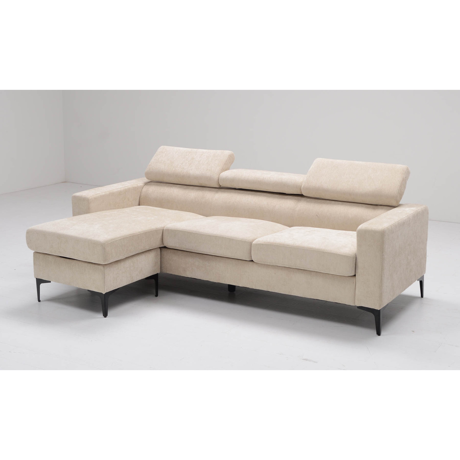 Una de sus principales ventajas son los cabezales reclinables, que permiten ajustar la parte superior para adaptarse a diferentes posturas. Gracias a este sistema, puedes disfrutar de una sentada más cómoda, ofreciendo un excelente apoyo para cuello y cabeza, ya sea para ver la televisión, leer o descansar. Este detalle marca la diferencia en el confort diario, convirtiendo este sofá chaise longue con patas altas en una pieza pensada para el relax.
