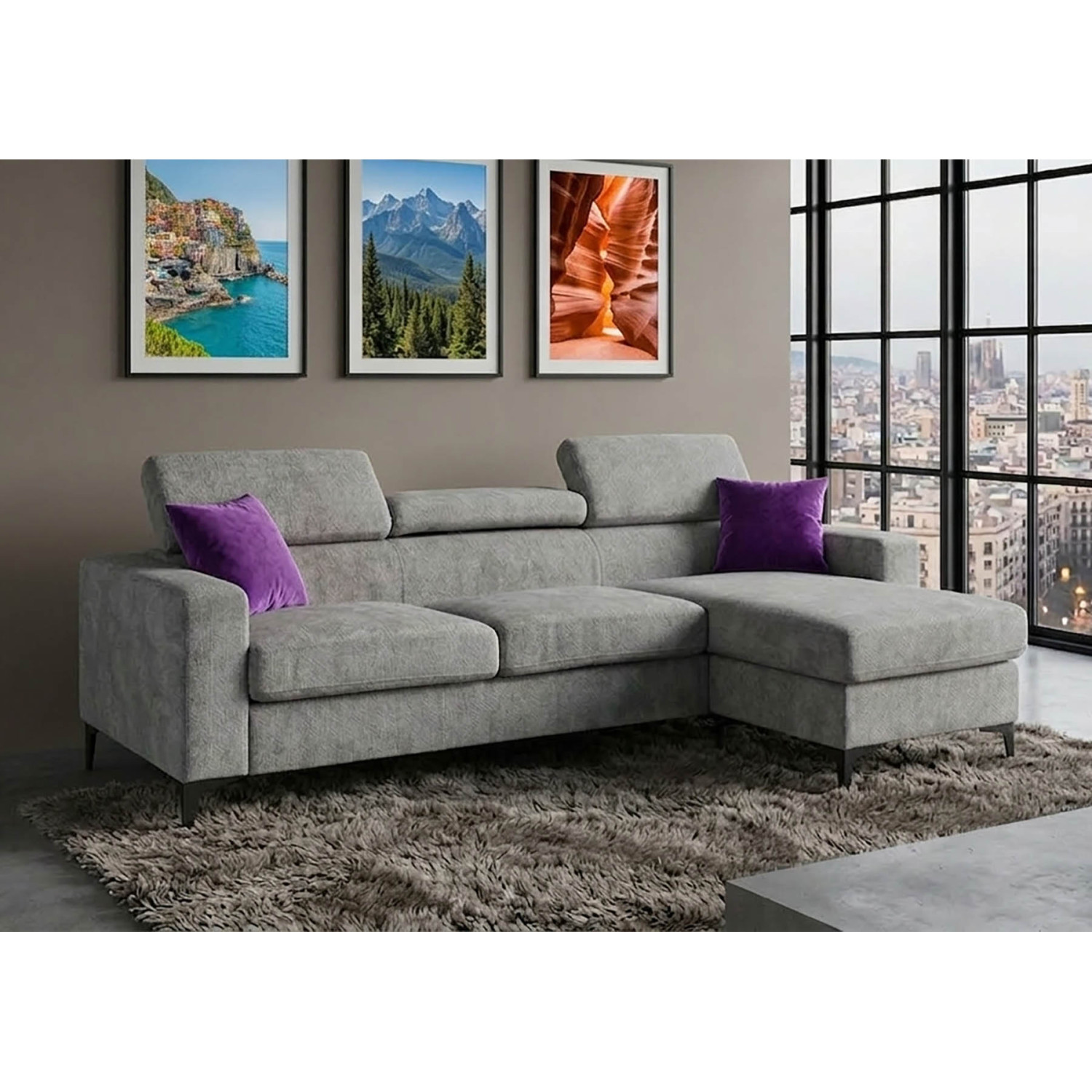 - Descripción: Sofá chaise longue Fido gris 220 cm
